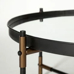 Featuring a round, mirrored table-top that is removable, the Marshall I is a stunning accent table with matte-black metal sides and brass-toned joints. The posh table top is mounted atop a four-legged metal bass for stability. The Marshall I flaunts a combination of black and brass metallic accents in addition to the mirrored accents which make it a great choice of accent furniture for spaces based on the Industrial or Mercana Modern design styles.