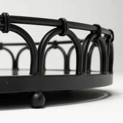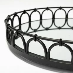 Crafted from metal and finished in a matte-black tone, the Maud is a stunning, round tray that flaunts a mirror glass bottom and intricately styled railings. With an elegant design that is complemented by the uni-tone finish, the Maud fits perfectly in spaces based on the Mercana Modern design style.