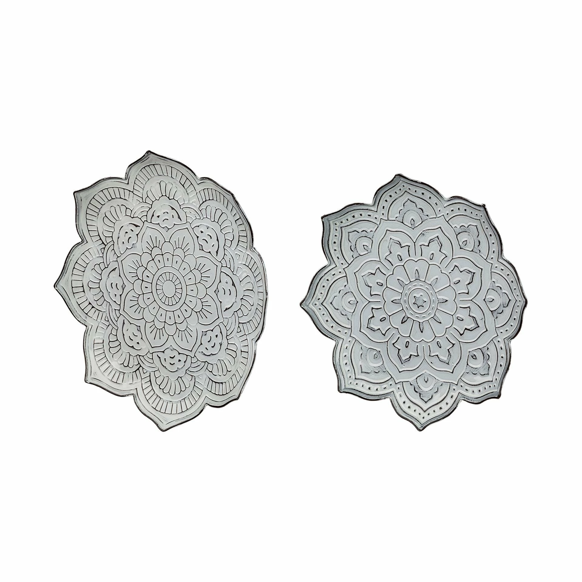 Create a unique look on your wall with this pair of Miranda wall decor pieces by Mercana. This stamped metal wall art features a lotus flower design that fits well with modern decor. Use these as a focal point or combine them with other wall hangings to make your own gallery wall.