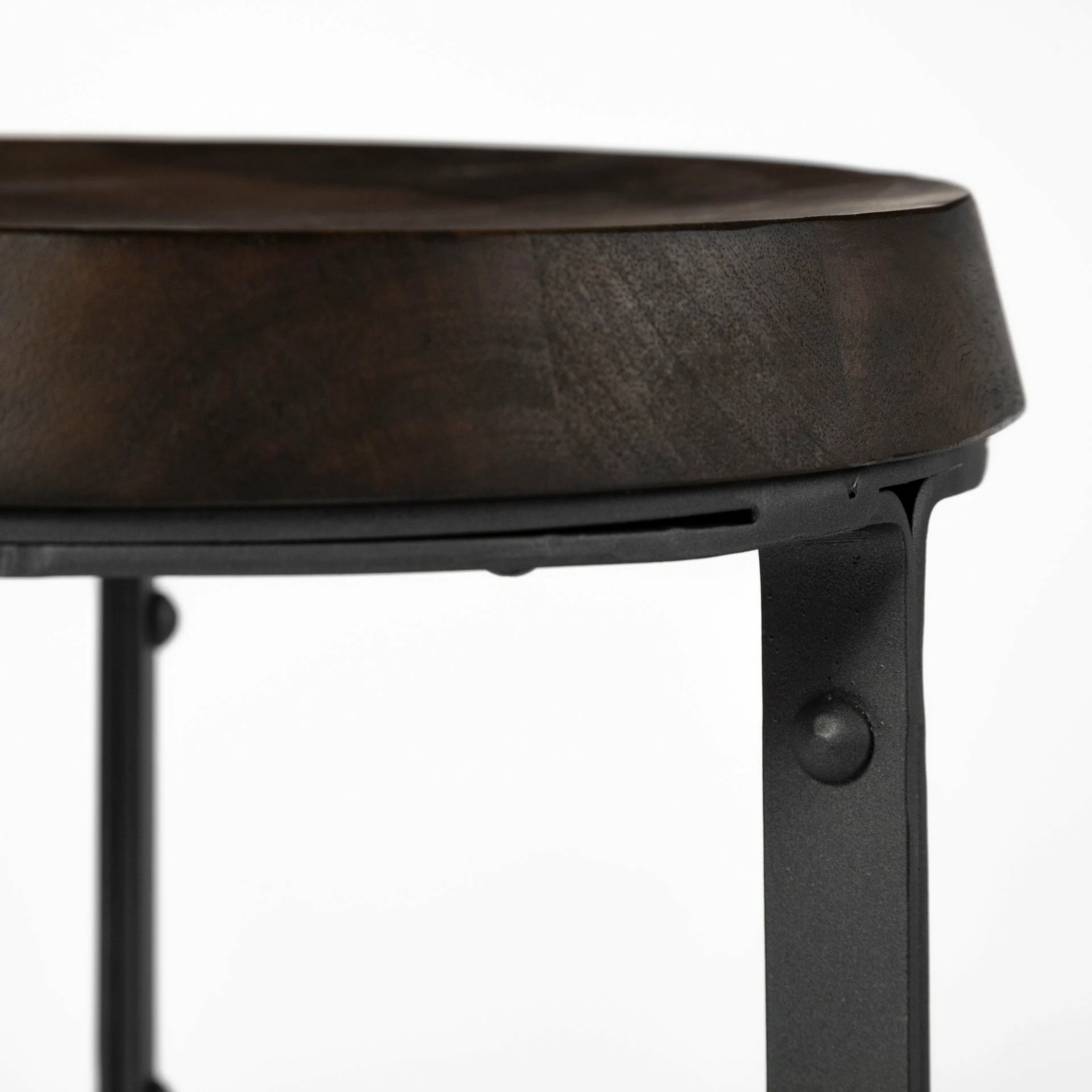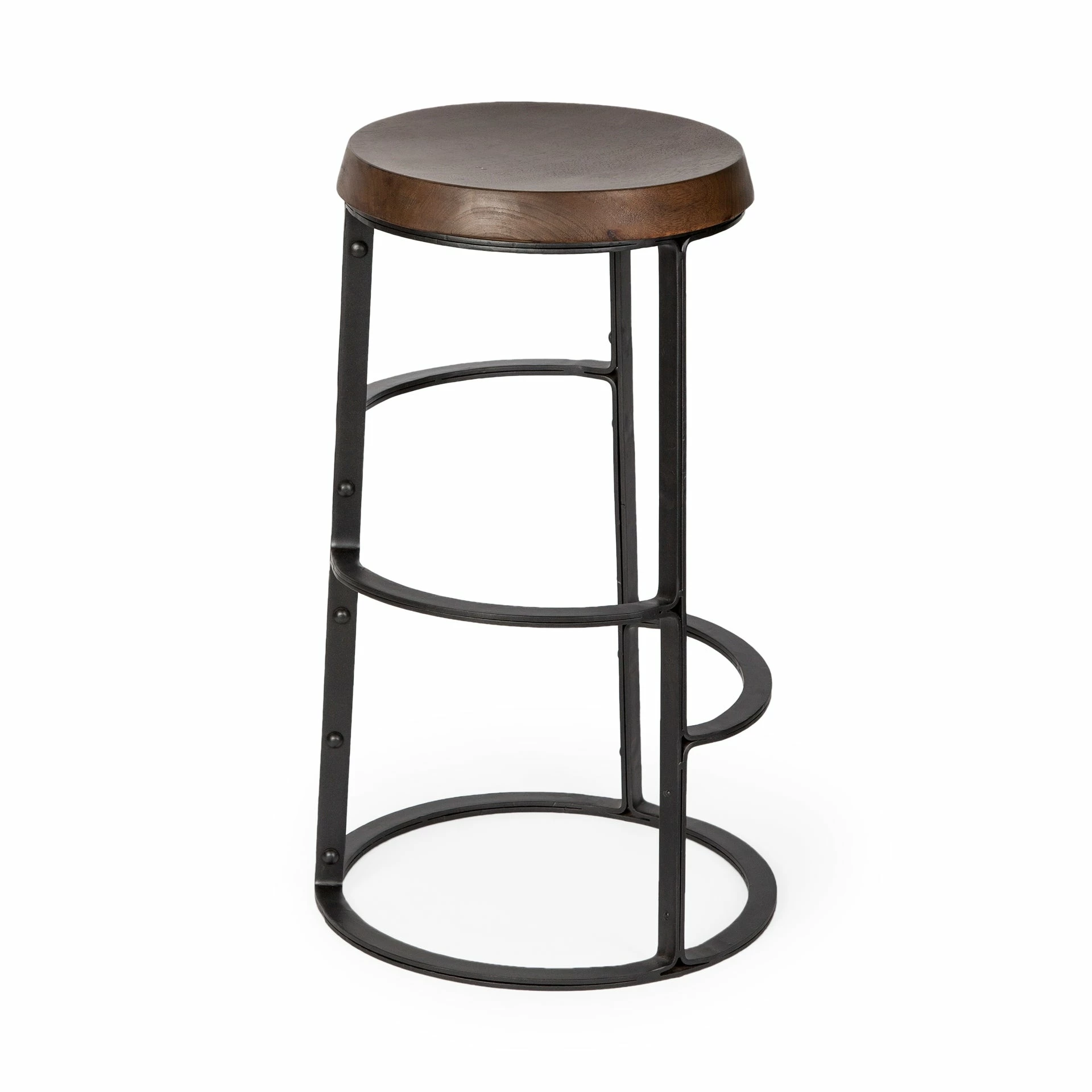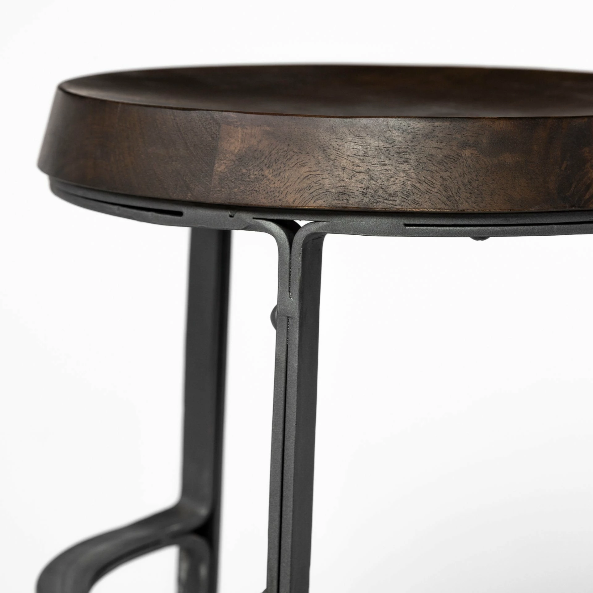 Featuring a round, contoured seat made from dark-stained solid Indian mango wood, The Neo II is a stunning counter-height stool. The solid wood seat is mounted on a uniquely designed iron base finished in a matte black tone. The Neo II, when paired with the right pieces, fits great in spaces based on the Industrial and Woodlands design styles.