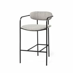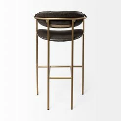 The Parker is a simple yet stylish bar stool featuring a deep Brown faux-leather or Gray fabric seat and back perched atop a sleek, four-legged iron frame. Available in counter height (35.8″) or bar height (39.8″)