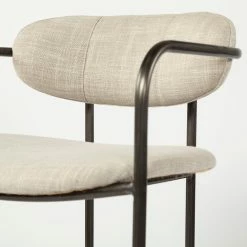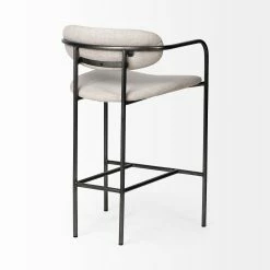 The Parker II is a spectacular counter-height chair that features a beige, fabric-covered seat and backrest mounted on a sleek, gun metal grey iron frame. The frame on the Parker II is molded such that it extends to provide armrests and a footrest, resulting in exceptionally comfortable seating experience. The combination of beige upholstery on a metal frame looks stunning and makes the Parker II a great fit for spaces based on the Mercana Modern, Coastal and Enduring Elegance design styles.
