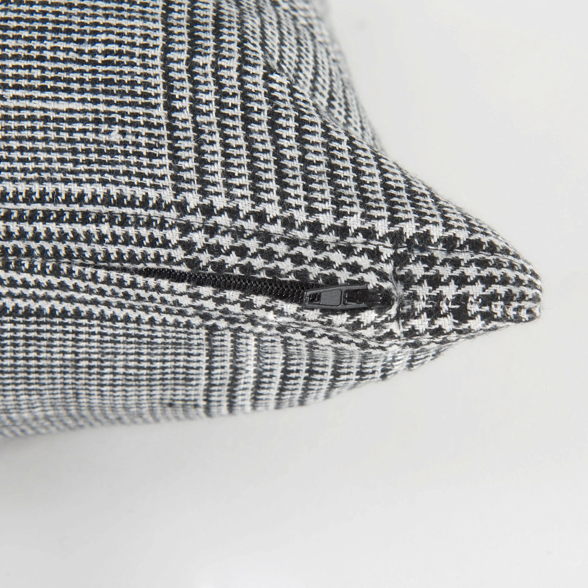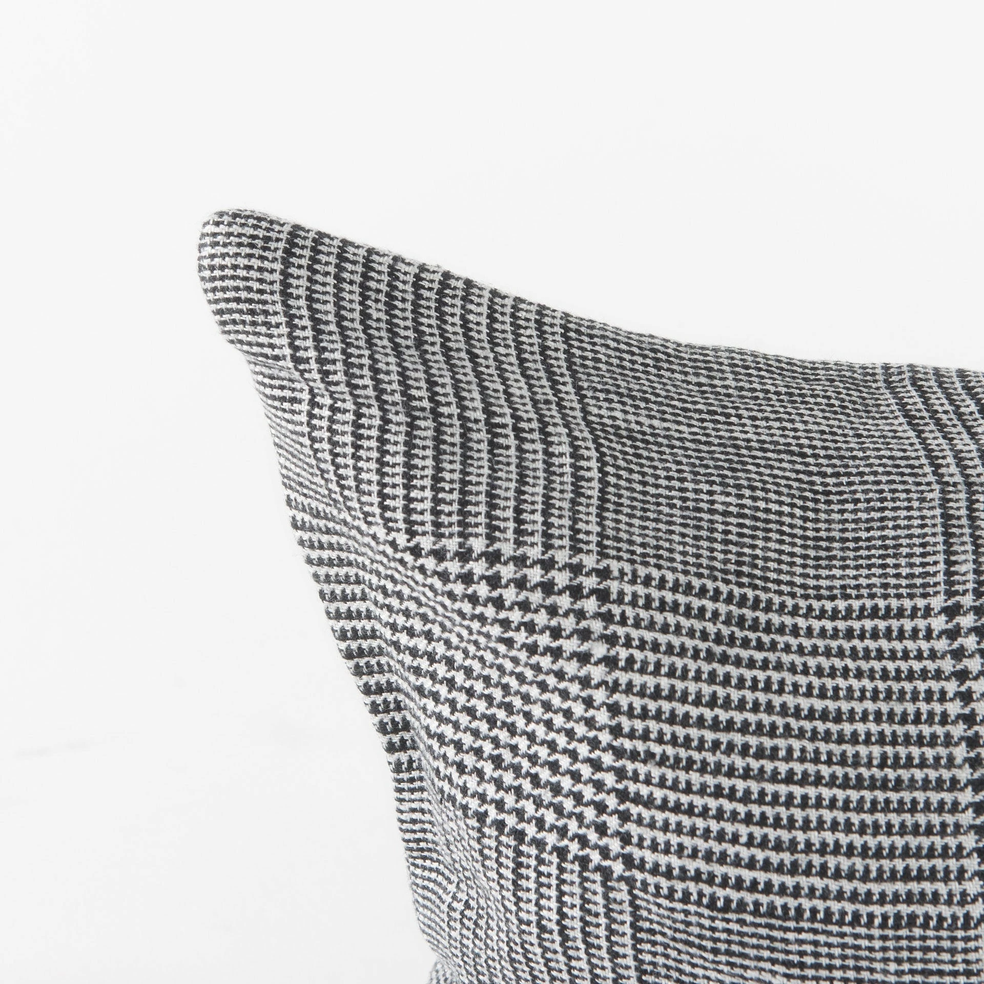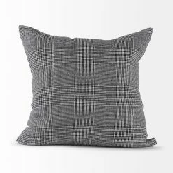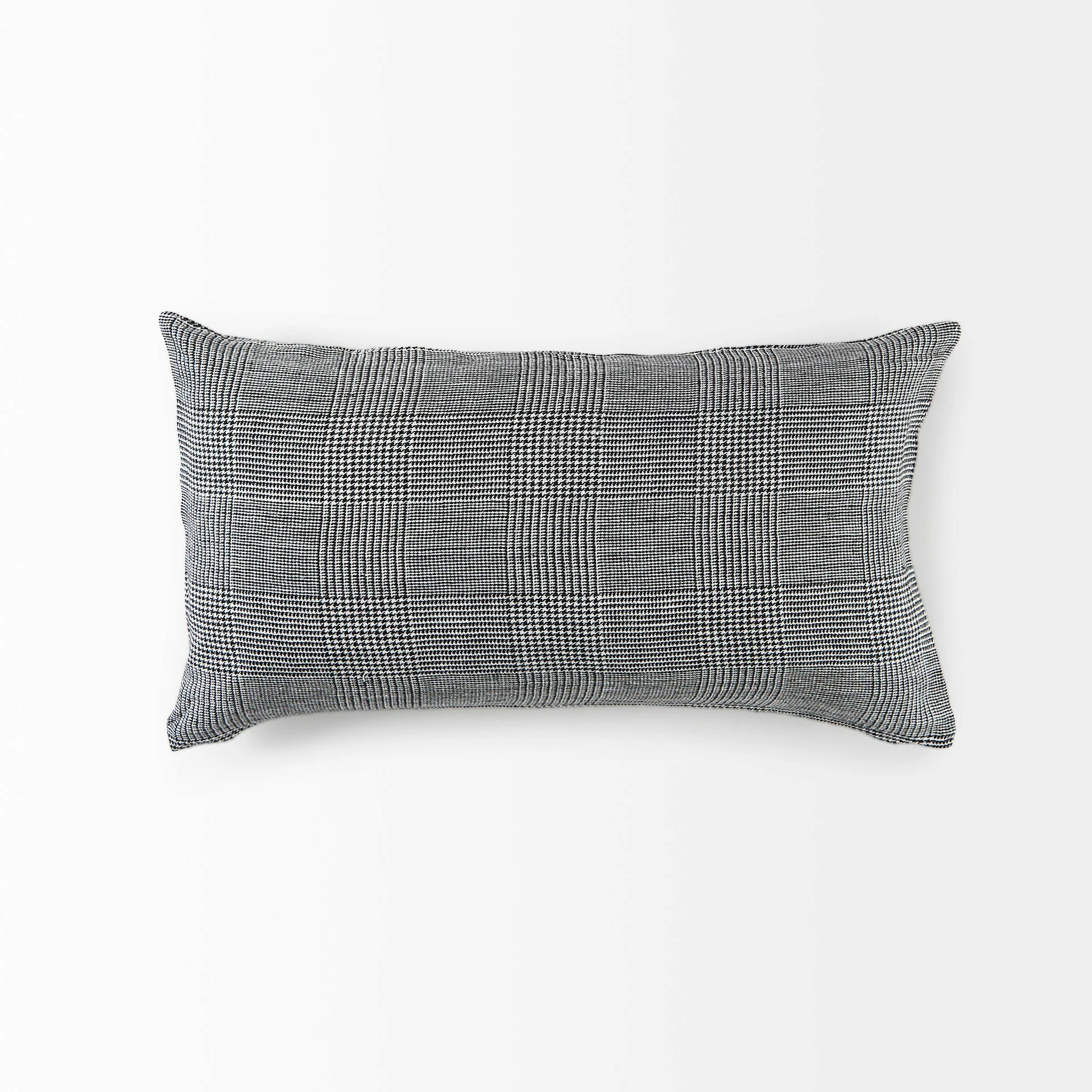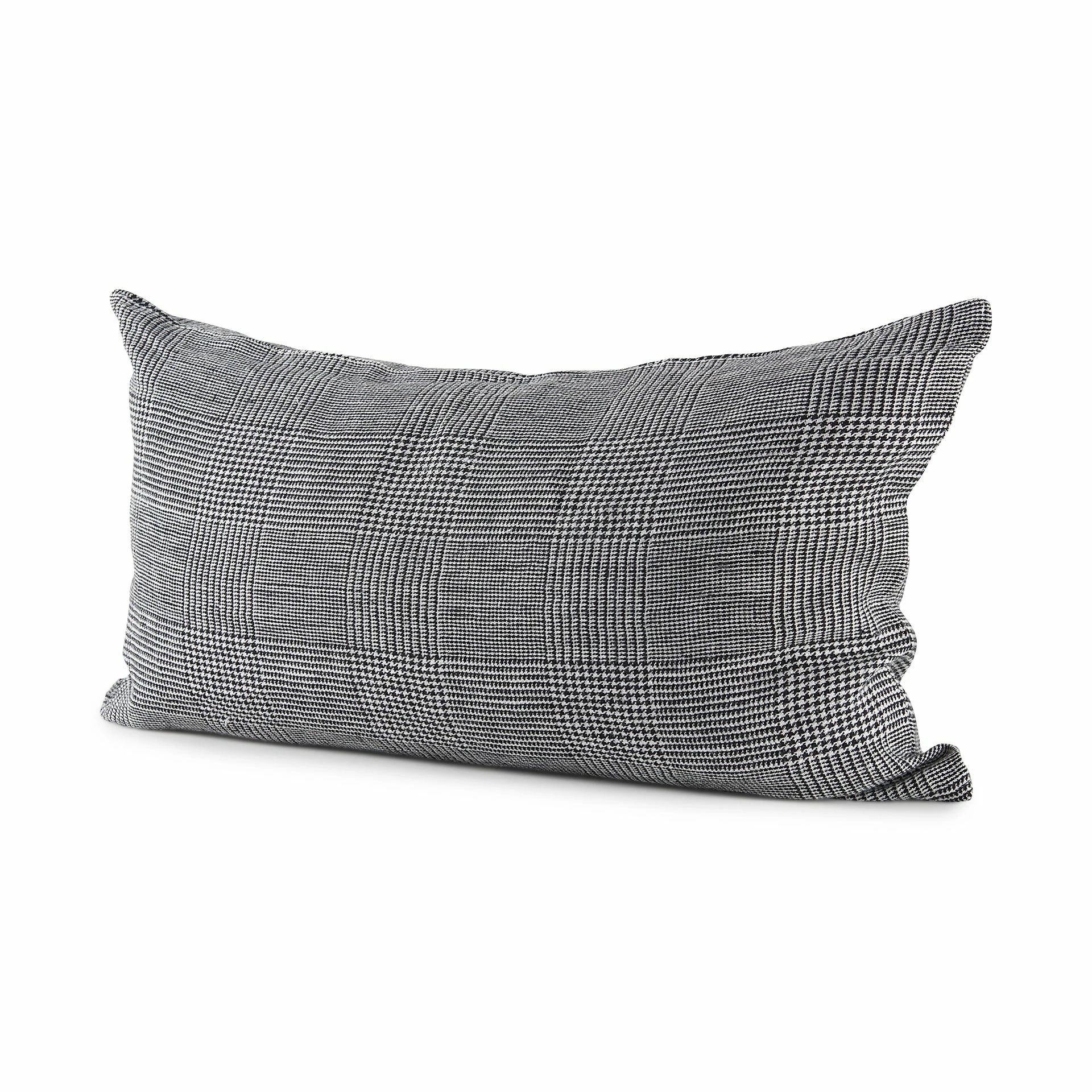 The Ramone is a 14 x 26 White and Black Fabric Decorative Pillow Cover with zipper closure. Also available in 20 x 20. Cover only. Insert not included (sold separately).
