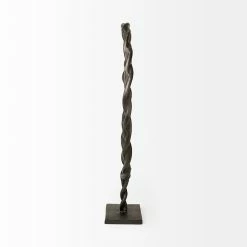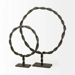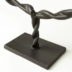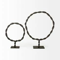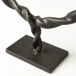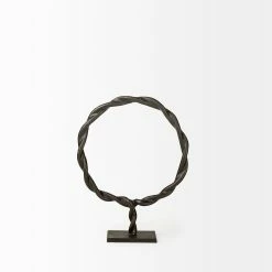 The Rizwan is a braided sculptural wreath crafted from cast aluminum and displayed beautifully on a clean black aluminum base. 23.0″ High ObjectThe Large Rizwan is 18.5″ long by 3.3″ wide by 23.0″ high Cast Aluminum ConstructionThe Rizwan is a braided sculptural wreath crafted from cast aluminum and displayed beautifully on a clean black aluminum base. Standalone or PairedDisplayed alone as a bold statement piece or paired with its smaller counterpart for double the impact, the Rizwan is a stylish way to update any space. Modern/Industrial DesignA mixture of unfussy design and dark metal material, the Rizwan works well in modern industrial environments. No AssemblyThe Rizwan is ready to be displayed as it arrives. Place it on a bookshelf, atop a desk or in an entryway for an artistic feel.