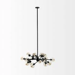 Exceptionally crafted from metal and finished in a matte-black tone, the Rudyard I is a stunning, multi-arm style chandelier that is sure to elevate your space. This uniquely designed chandelier features eighteen glass globes attached to a central, vertical beam by means of adjustable metal pipes with pivoting abilities. Each glass globe hosts a 25-Watt rated, E12 bulb (Sold Separately) that helps cast a warm, ambient glow. The Rudyard I looks amazing in spaces based on the Mercana Modern, Industrial, and Enduring Elegance design styles.