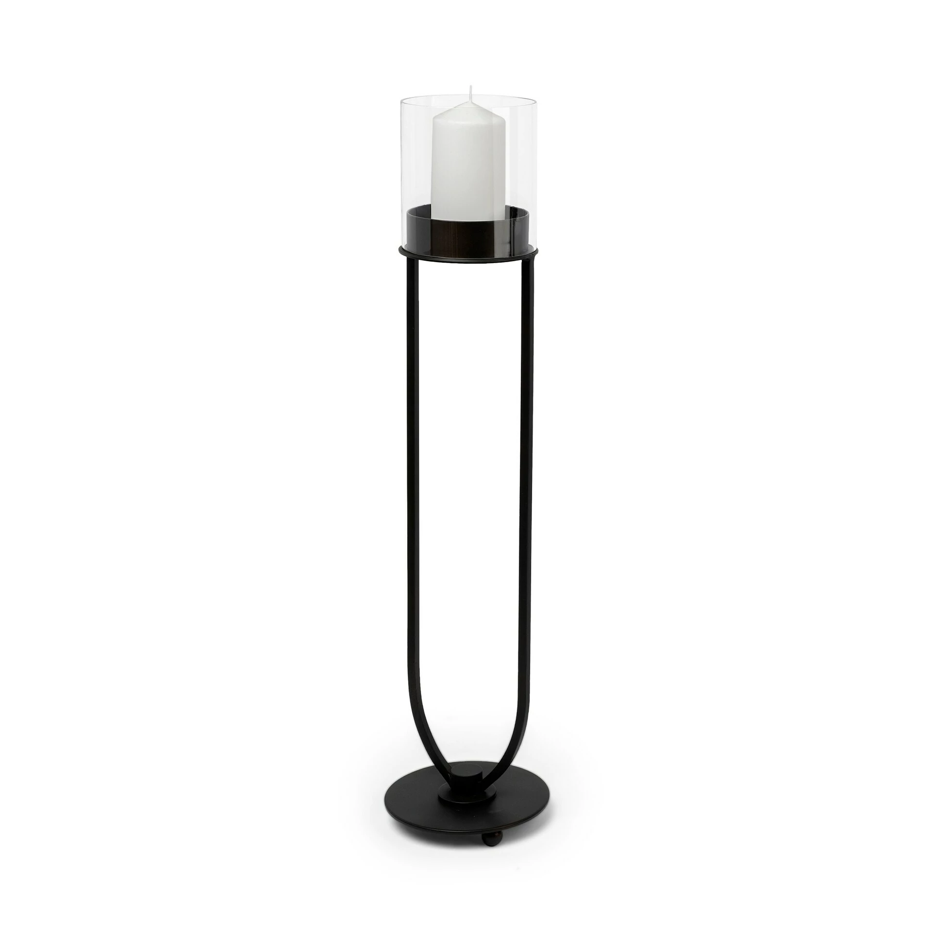 The Salah I is a stylish, tall candle stand made from matte-black polished iron.