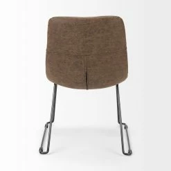The Finn II is a stunning side chair featuring a perfectly padded, brown faux-leather seat that is braced by a sleek metal frame. The pipe-style frame, made from matte-black polished iron, provides stability and sturdiness, guaranteeing a pleasant and comfortable dining experience. The Finn II is simple, yet stylish and looks great with almost any dining table, especially in spaces based on the Mercana Modern, Woodlands and Industrial design styles.