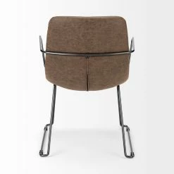 The Sawyer II is a posh chair that features a medium-brown toned, faux-leather seat and backrest mounted on a sleek, matte-black toned iron frame. The frame on the Sawyer II is molded such that it provides armrests resulting in a comfortable seating experience. The combination of medium-brown toned upholstery on a metal frame looks stunning and makes the Sawyer II a great fit for spaces based on the Mercana Modern, Lakeside and Woodlands design styles.