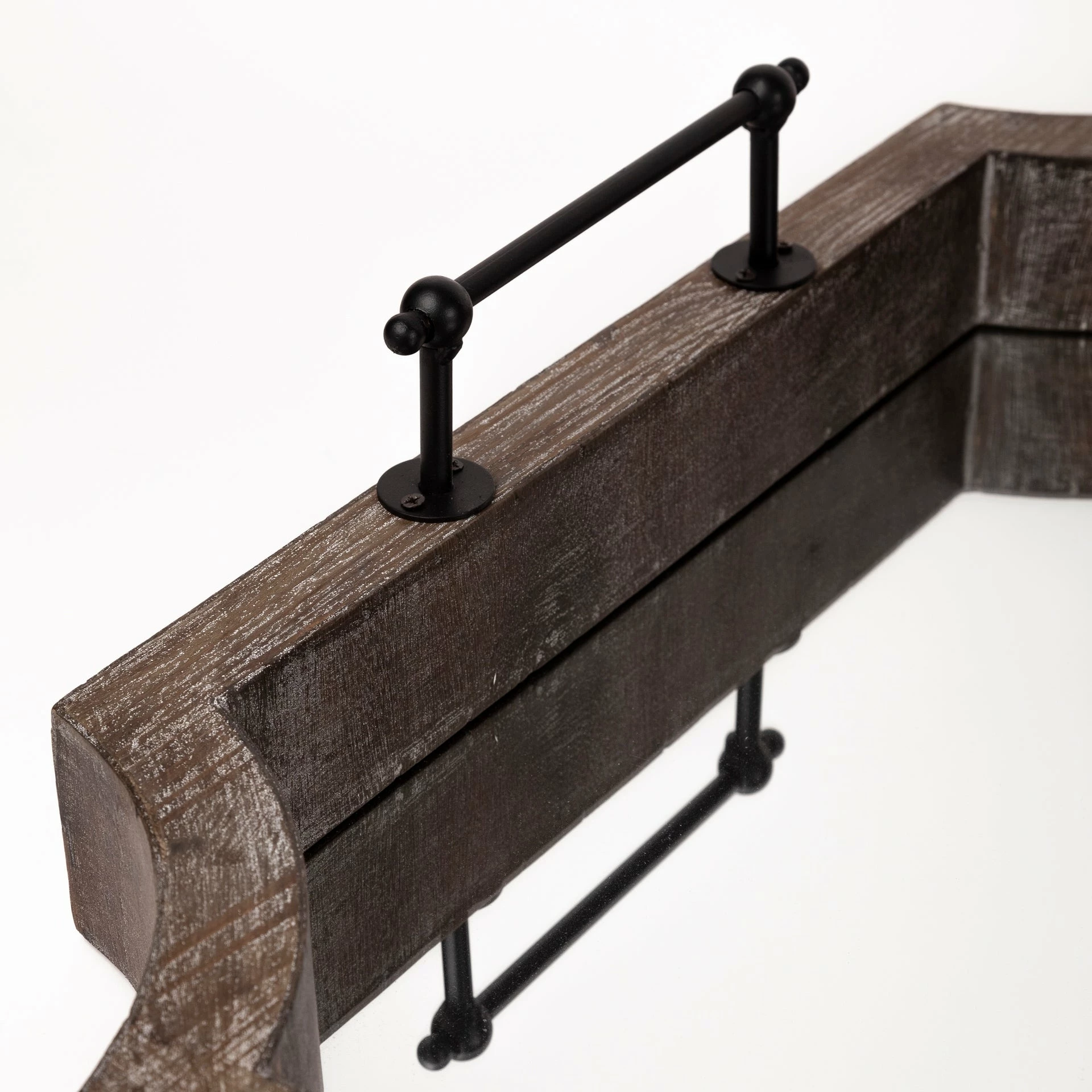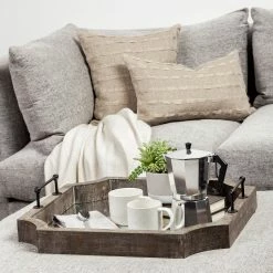 Crafted from wood and finished in a rustic antiqued-wash tone, the Shrouda II is a tray with a mirrored-glass bottom and black metal handles. The Shrouda II is large enough to store all the items you’re serving your guests but its functionality isn’t limited to just that as it can be mounted on a wall to serve as a mirror. The Shrouda II is a true mix of functionality and charm and fits perfectly in spaces based on the Farmhouse, Enduring Elegance, Lakeside, Woodlands and Coastal design styles.