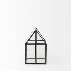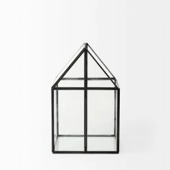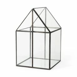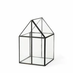 The Sikes, a house-shaped terrarium with transparent glass walls in a metal frame, provides endless decorative storage possibilities!