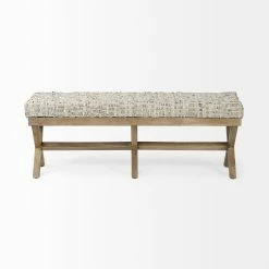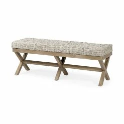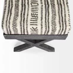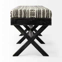 The Solis is a classy bench that features a crisscrossed base made from solid Indian mango wood and finished in a black tone. Rested atop the sturdy wooden base is a perfectly padded, black and cream fabric covered seat top with beautiful patterns. The Solis fits perfectly in spaces based on the Global Curiosities design style.ย