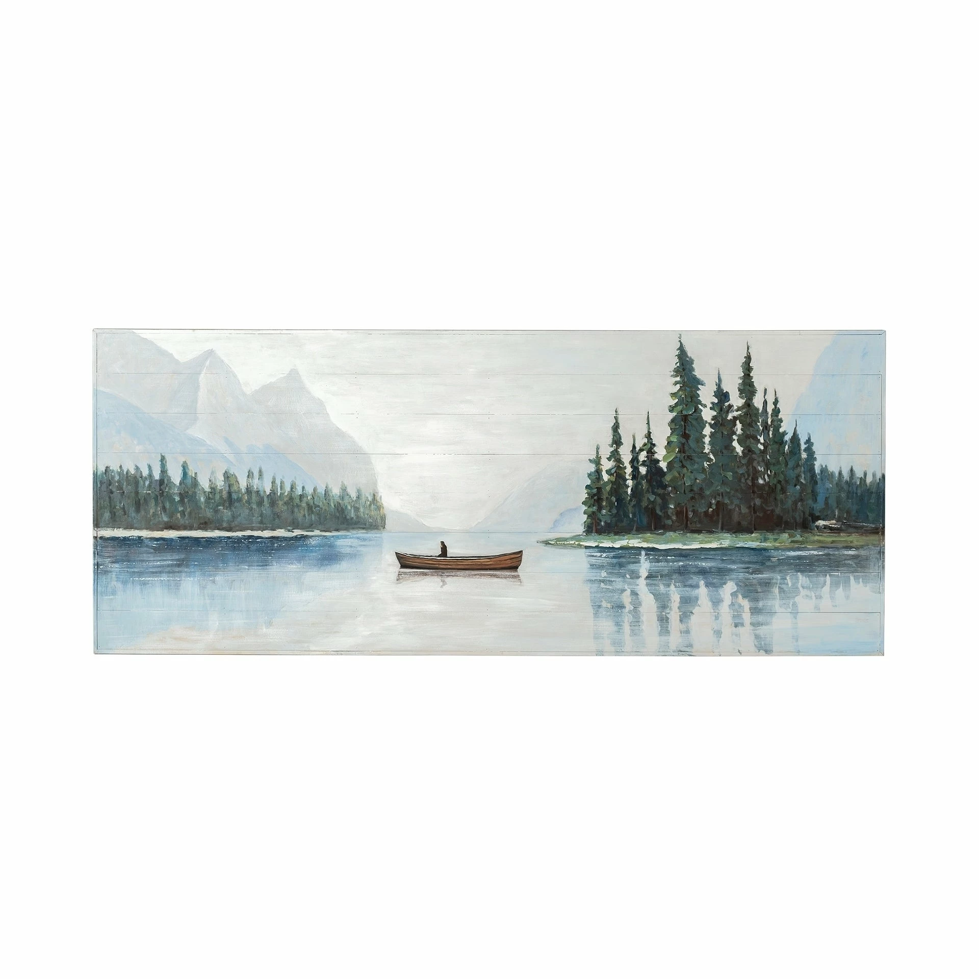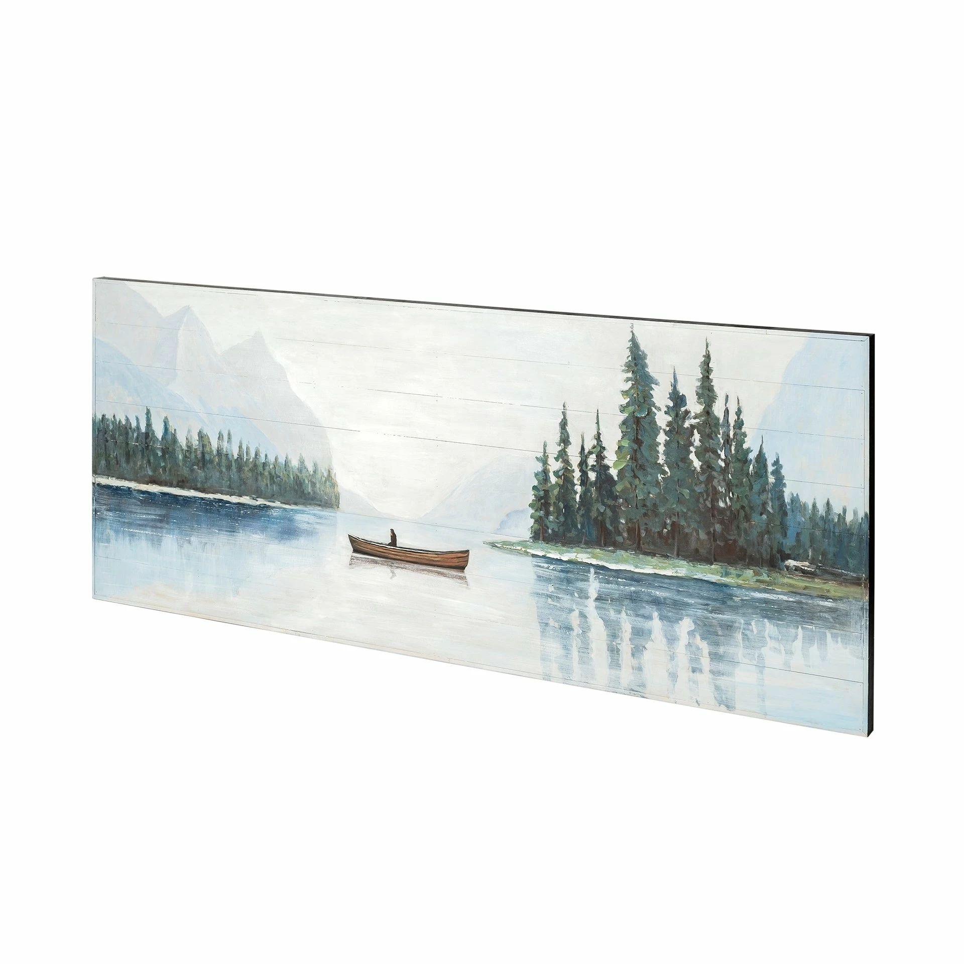 The Solitude, a stunning oil painting on wood, is a pictorial symphony. The artist exquisitely depicts the charms of nature in the form of a portrait that emphasizes on the calm tides of the lake.