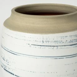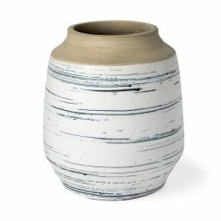 Meticulously crafted from ceramic and finished in a white tone with aย blue broken-lineย patternย on the exterior, theย Sonnetย is a spectacular decorativeย vaseย that is guaranteed to be a hit in most spaces, especially ones based on theย Coastal, Mercana Modern and Tropicalย design styles.