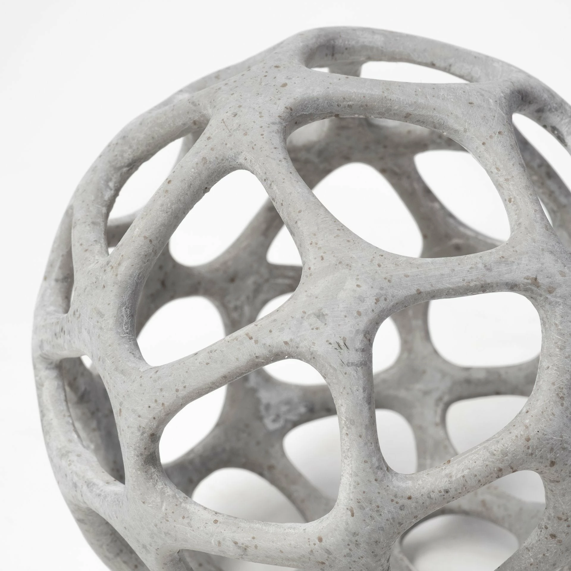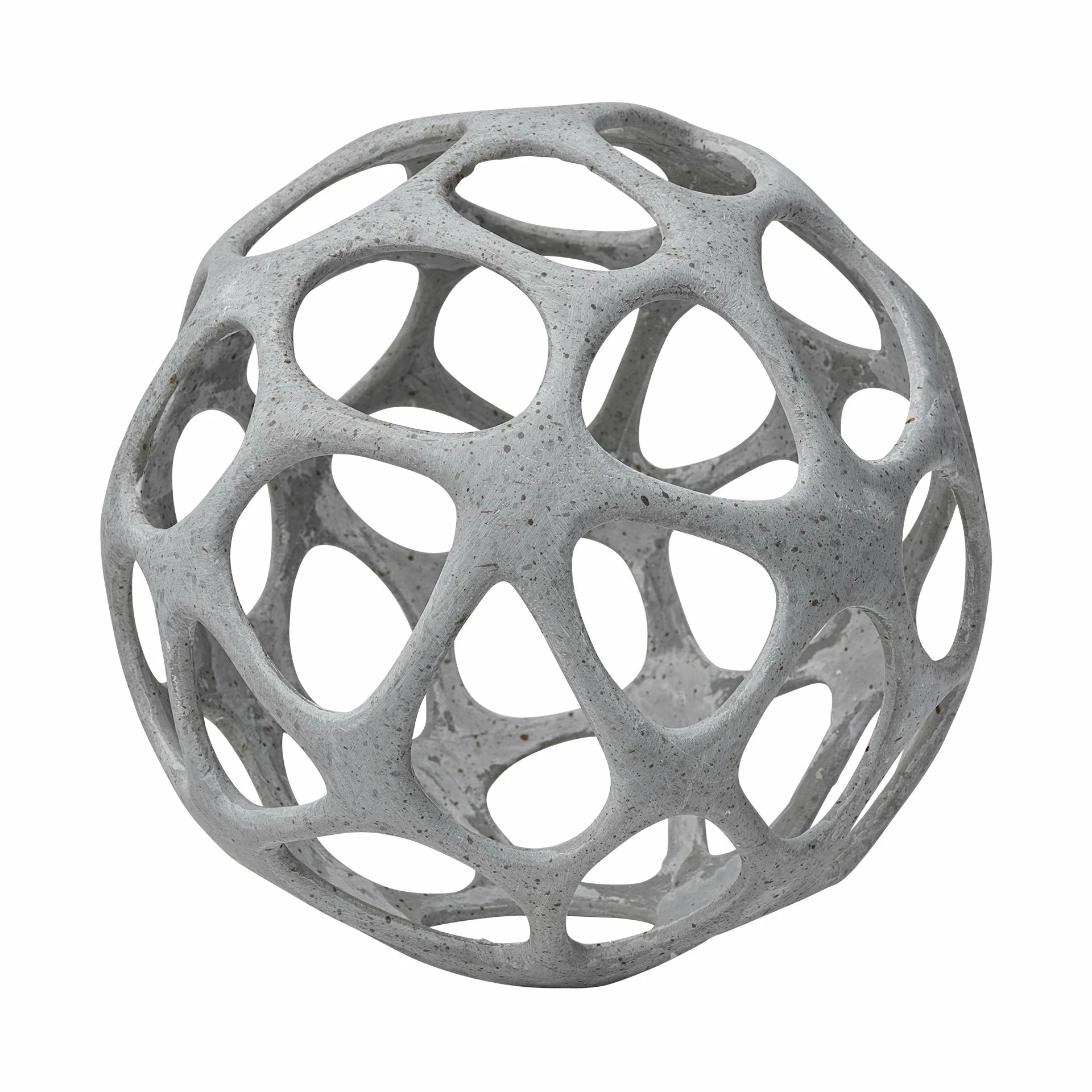 Crafted from resin finished in a rustic white polish, the Spiro is a hollow, decorative orb with irregular hexagonal cutouts. It looks great by itself or when paired with the other pieces in this series, especially in spaces based on the Enduring Elegance or Industrial design styles.