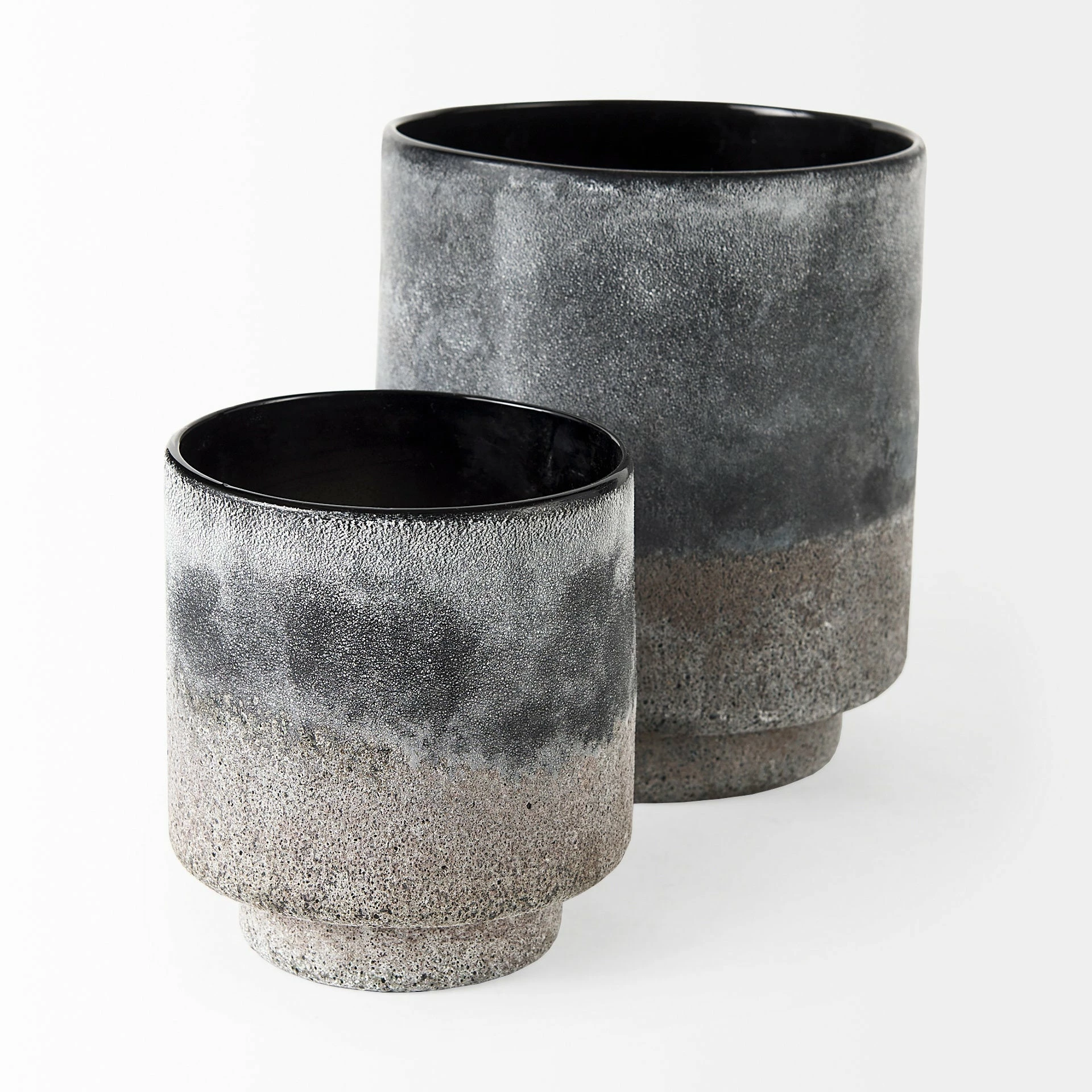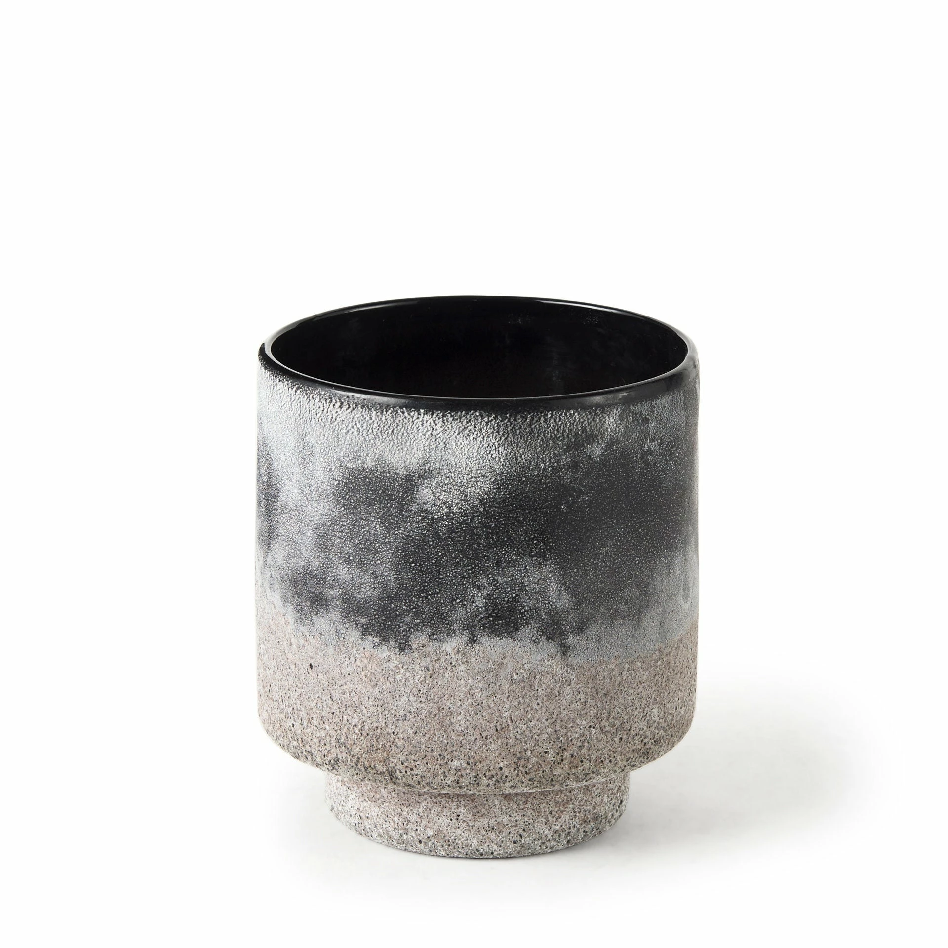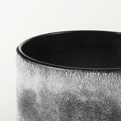 The Squally is a small vase measuring 6.0″ long by 6.0″ wide by 6.4″ high.ย The Squally is crafted with glass and ceramic, and is smooth on the interior, and shows off a textured surface on the exterior.ย The Squally has a speckled black and light brown finish, that is designed to have a unique Ombre effect.ย Featuring speckled color and ombre design, this vase makes for a gorgeous addition to spaces based on the modern/tropical design style.