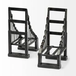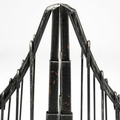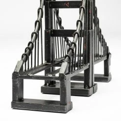Keep your books from falling over, in style, with this pair of bookends. These suspension bridge shaped bookends are perfectly at home in spaces based on the Industrial design style. Reminiscent of famous architectural pieces such as the Golden Gate Bridge, or the Brooklyn Bridge, this piece can also be used as a paperweight or part of a centerpiece ensemble. Sold as a pair, these pieces are constructed of metal in a distressed brown finish.
