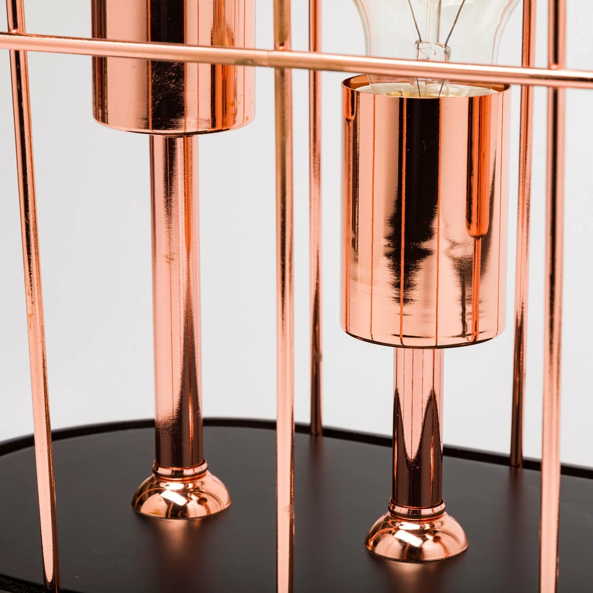 Featuring a rose gold polished cage rested upon a black base, the Sutton is a spectacular lamp that boasts of a dazzling design. - Beautiful Illumination