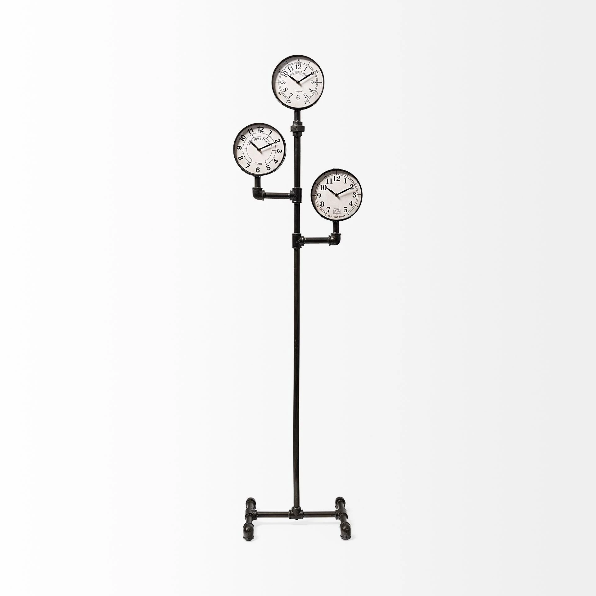 Trifect is a different style of floor clock that we know you won’t be able to take you eyes off of. Inspired by old iron pipes and gauges it features 3 different clock faces with 3 different face designs so you can track what time it is with friends and family all over the world.