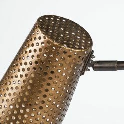 Crafted from metal and finished in a two-tone, gold and black palette, the Wesley III is a stunning industrial-inspired floor lamp that is sure to elevate your space. It features three lights, each enclosed within a perforated conical lampshade, that are attached to a central beam by sleek, adjustable metal pipes. The antiqued-gold toned, perforated lampshades not only add to the visuals of this piece but also help cast a radiant glow with a unique pattern, making it a great choice of lighting for almost any space that needs a touch of vibrancy. We recommend the Wesley III for spaces based on the Industrial and Mercana Modern design styles.ย