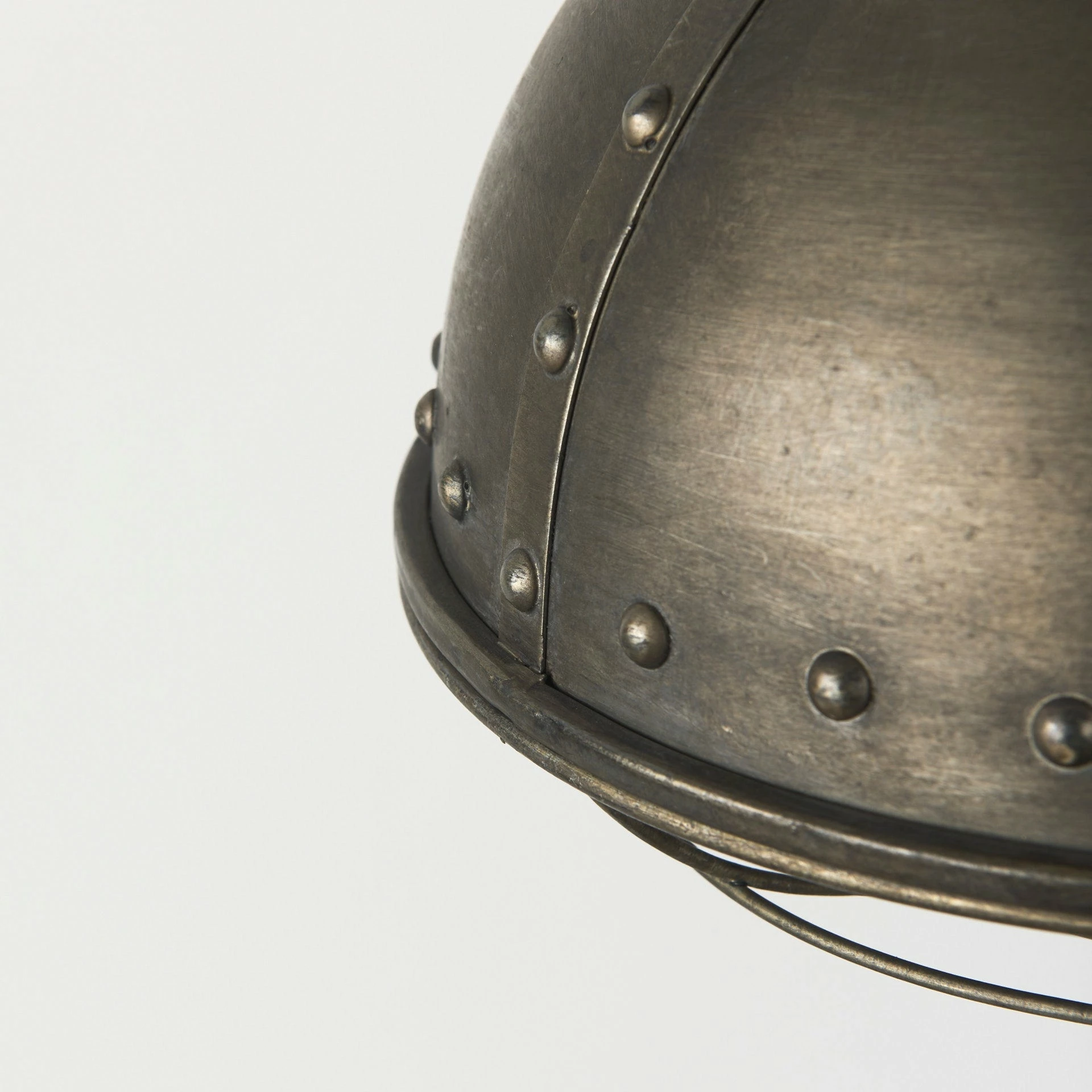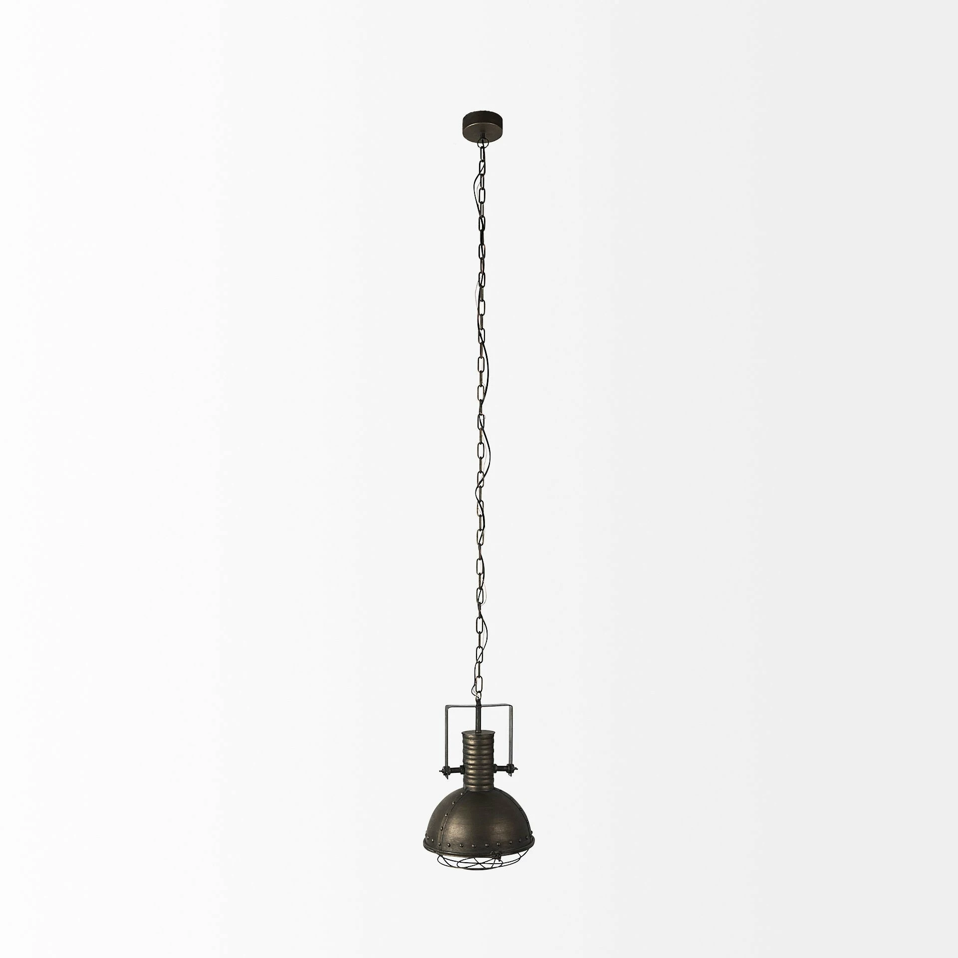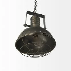 Β Crafted from metal, the Zaio is a stunning pendant light that is suspended using an industrial styled chain. The Zaio features a conical shaped metal shade with a caged bulb cover that contains a 60-Watt, E26 standard bulb (Sold Separately). The Zaio, thanks to its all-metal body with aΒ weathered antique gold finish with nickel undertones, fits perfectly in spaces based on the Farmhouse and Industrial design styles.Β