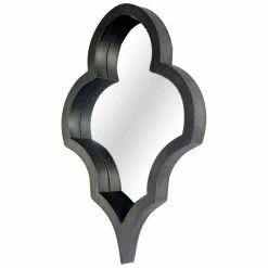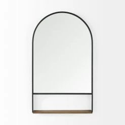New 😉 Mercana Cora Black Metal Frame W/Brown Wooden Shelf Wall Mirror 😀