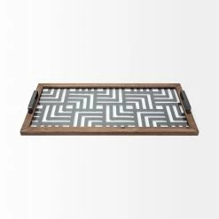Outlet ❤️ Mercana Fantuz Gray Metal, Wood And Glass Serving Tray – 32″L X 16″W X 2.5″H 🔔