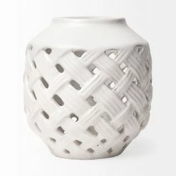New 😍 Mercana Forillon I Short White Glazed Lattice Pattern Vase – 8″W X 8″D X 8″H ✨