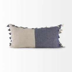 Outlet 👏 Mercana Joelle Blue And Beige Color Blocked W/Tassels Rectangle Decorative Pillow Cover ❤️