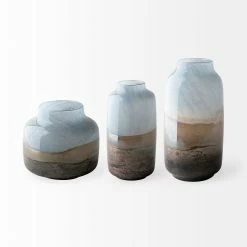 Best Sale 🌟 Mercana Nasser III Large Blue/Gold/Chrome Urn Style Glass Vase – 8″W X 8″D 15″H 💯